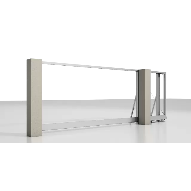 Рама: 96 мм. Комбинированное заполнение: сэндвич-панель L-гофр и разреженный профиль 37 мм. цвета «Серый антрацит» (RAL 7016). Автоматика ALUTECH Roteo